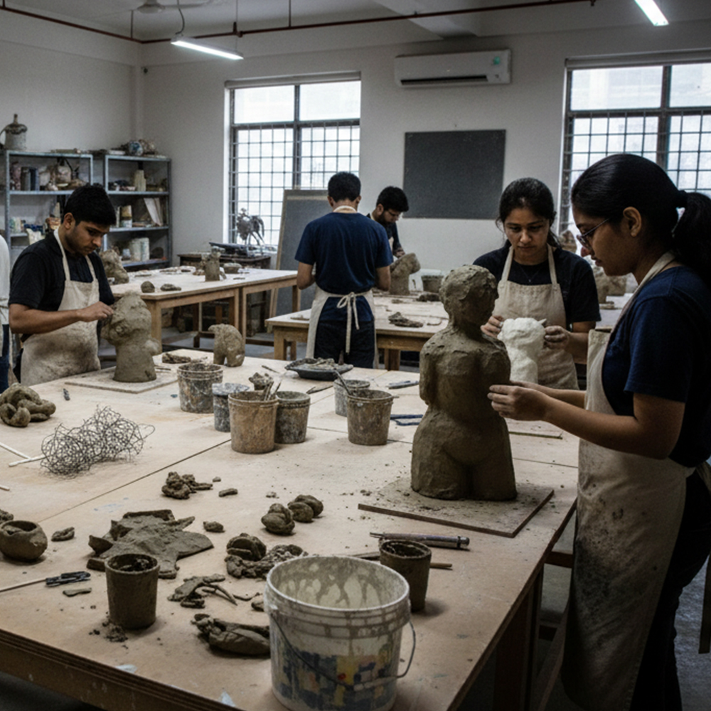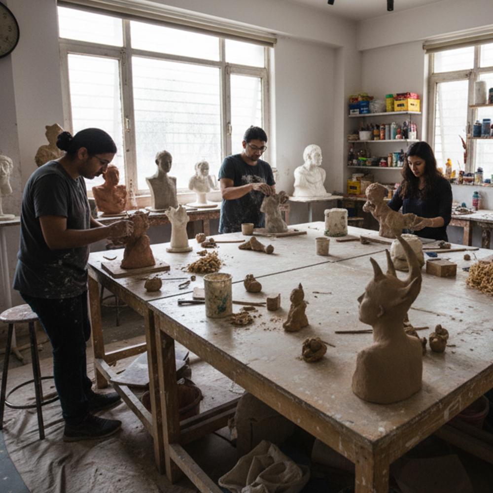 This immersive week focuses on three-dimensional form-making through materials like clay, plaster, and mixed media. Students will move beyond literal representation to explore structure, balance, texture, and conceptual depth.